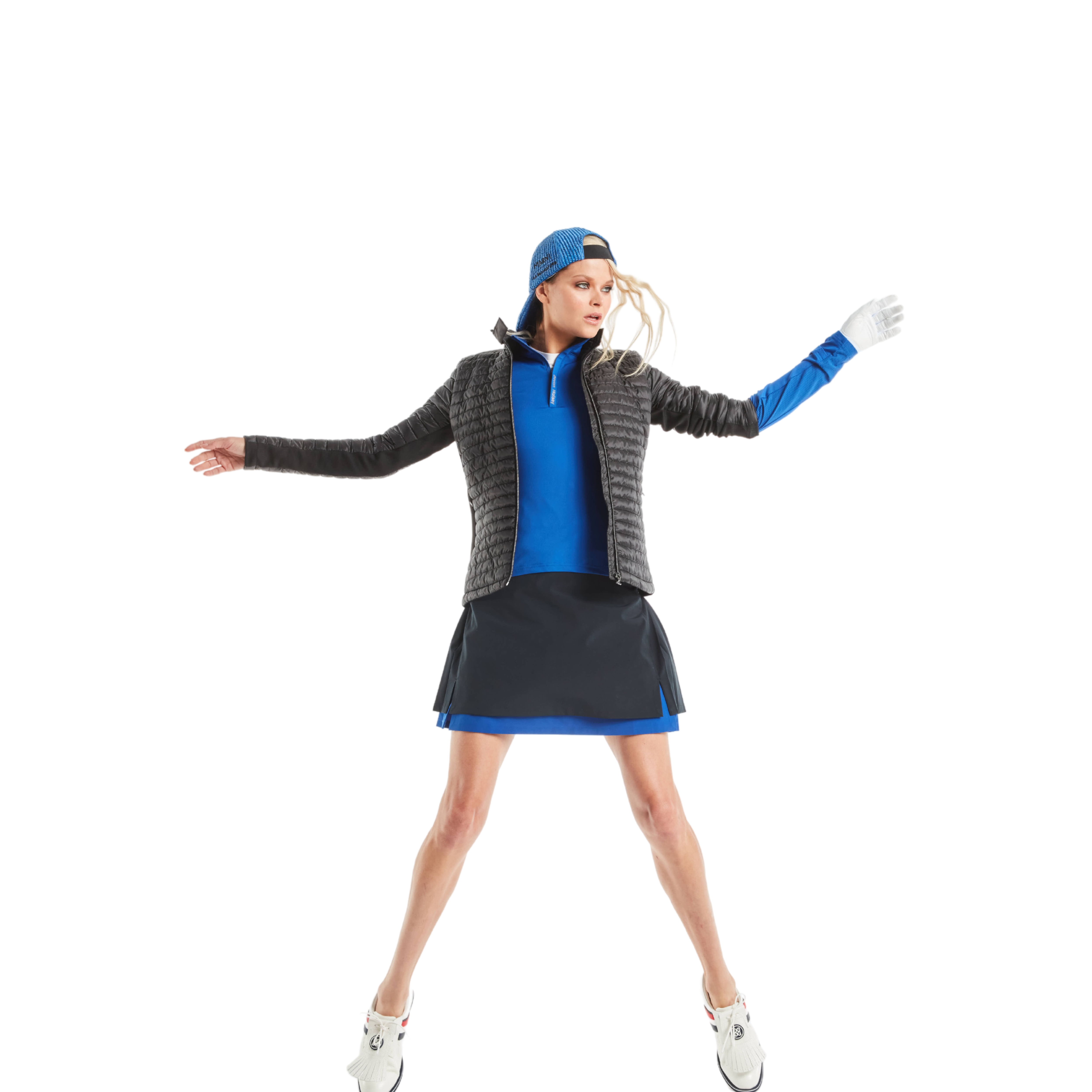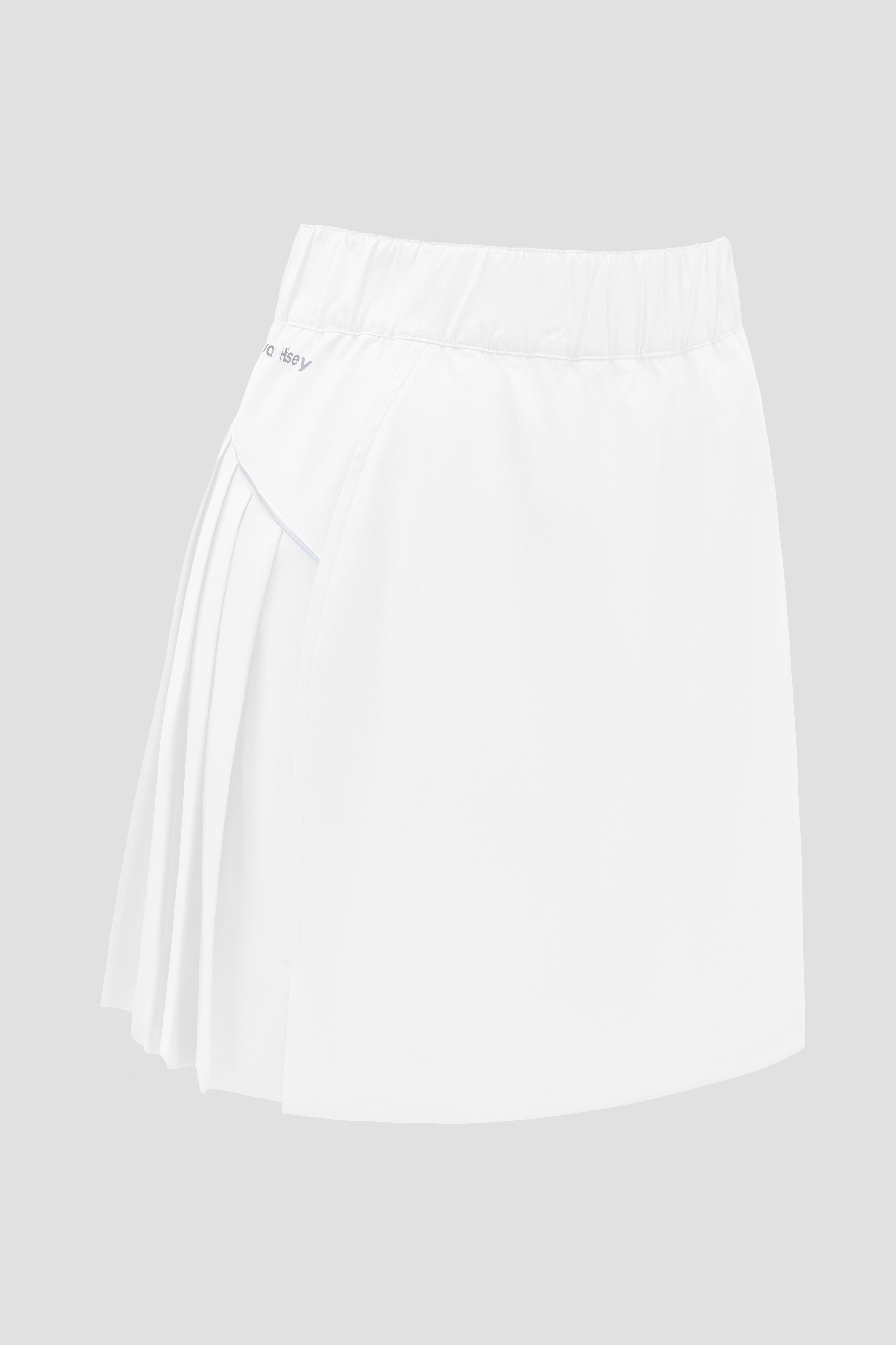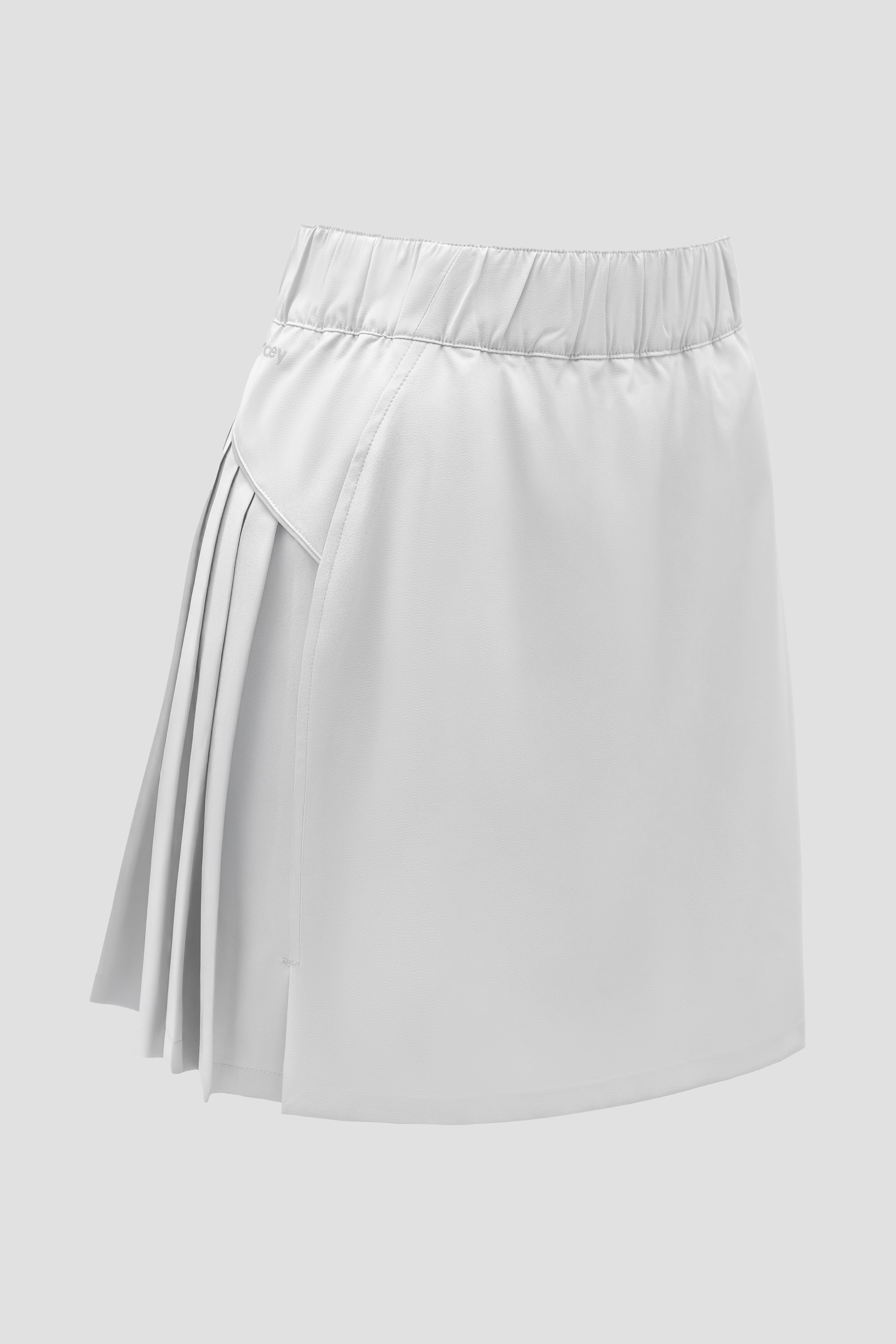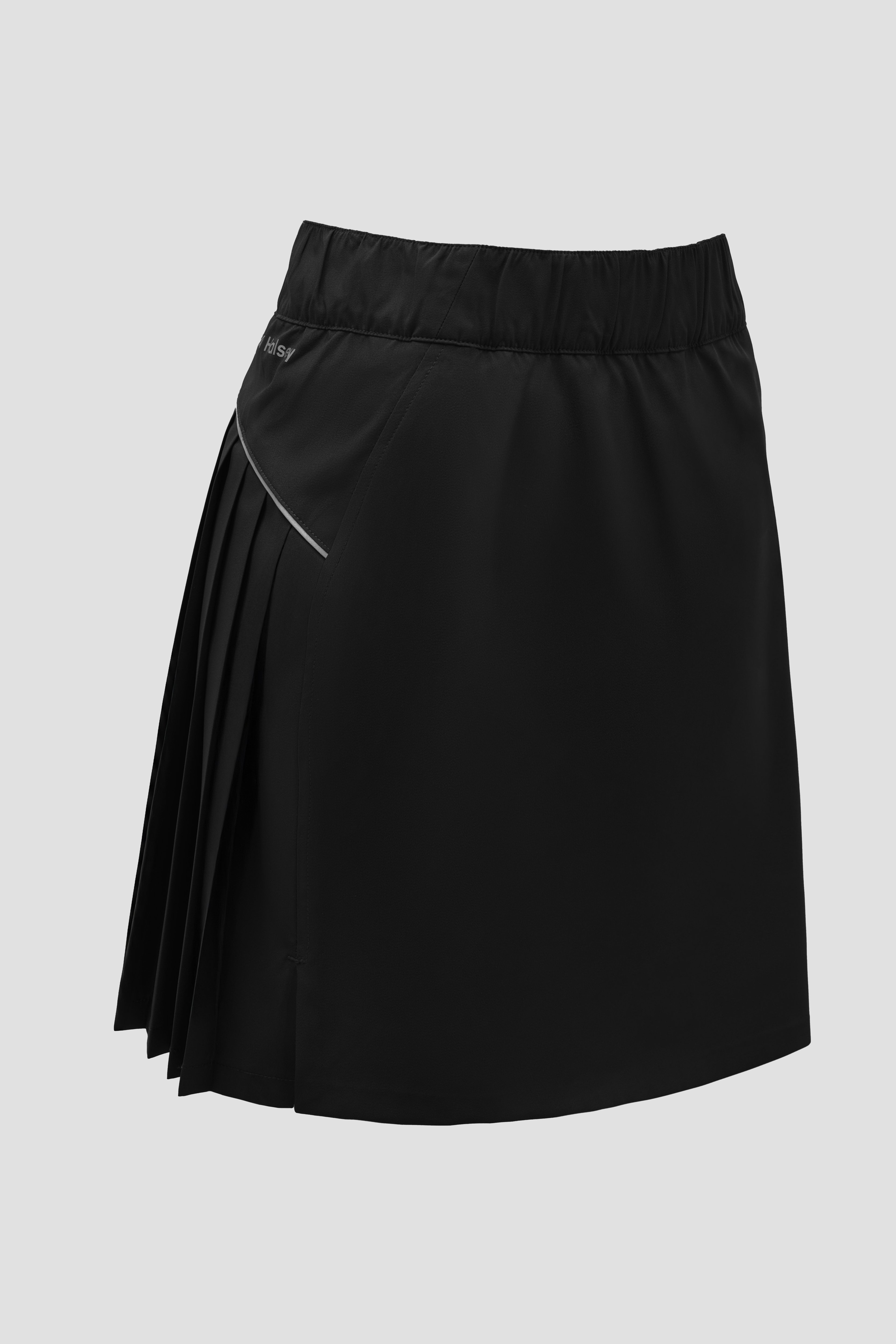 Our A-line skort has a front and back ruched, elasticized waistband. The back features a reflective yoke detail and beautiful flowing pleats that offer allowance for extra movement. Her monochromatic “compression” superfly short is attached with 2-side panel pockets and a reflective tee holder.